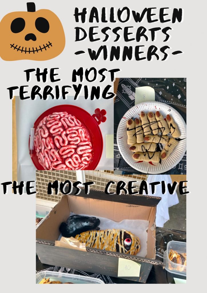 SCARY DESSERTS AND SNACKS. A SOLIDARY HALLOWEEN BREAKFAST was organized. Students from 1st and 2nd ESO became chefs for a day and prepared delicious scary food. The food was exhibited at the playground and everybody could enjoy a Halloween breakfast during the break. The money raised was donated to the charity AFANION. Discover the winners