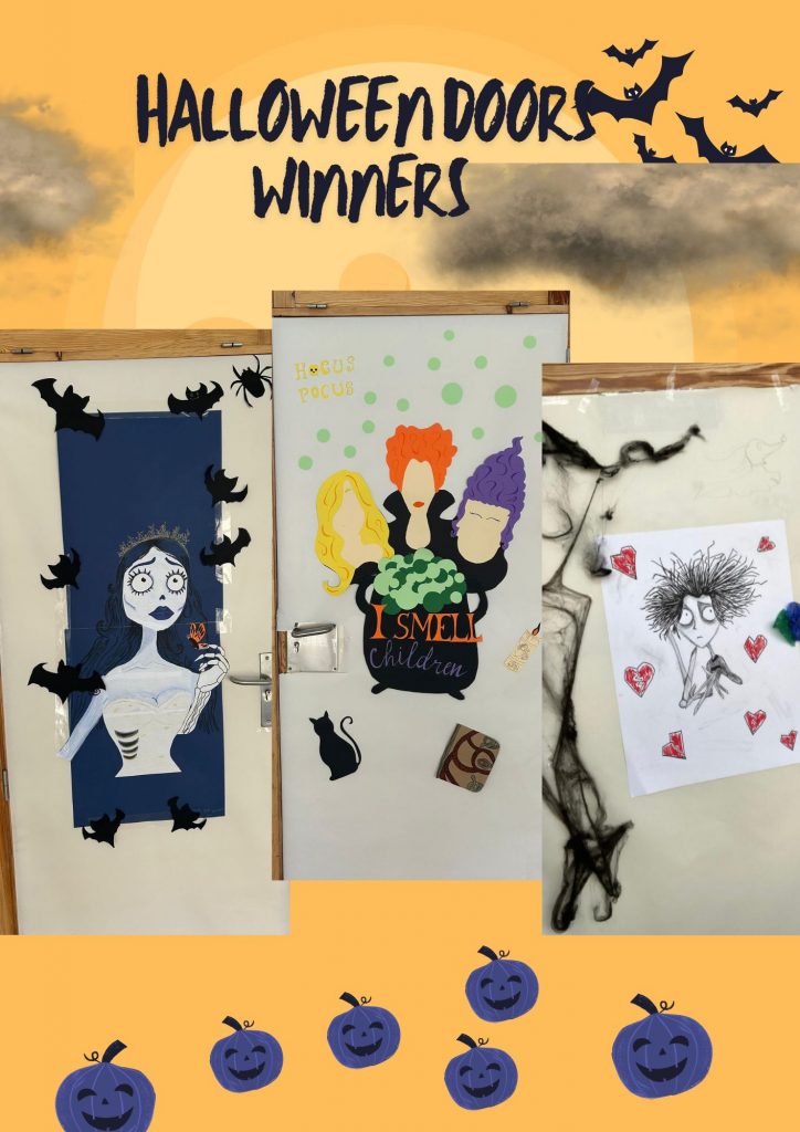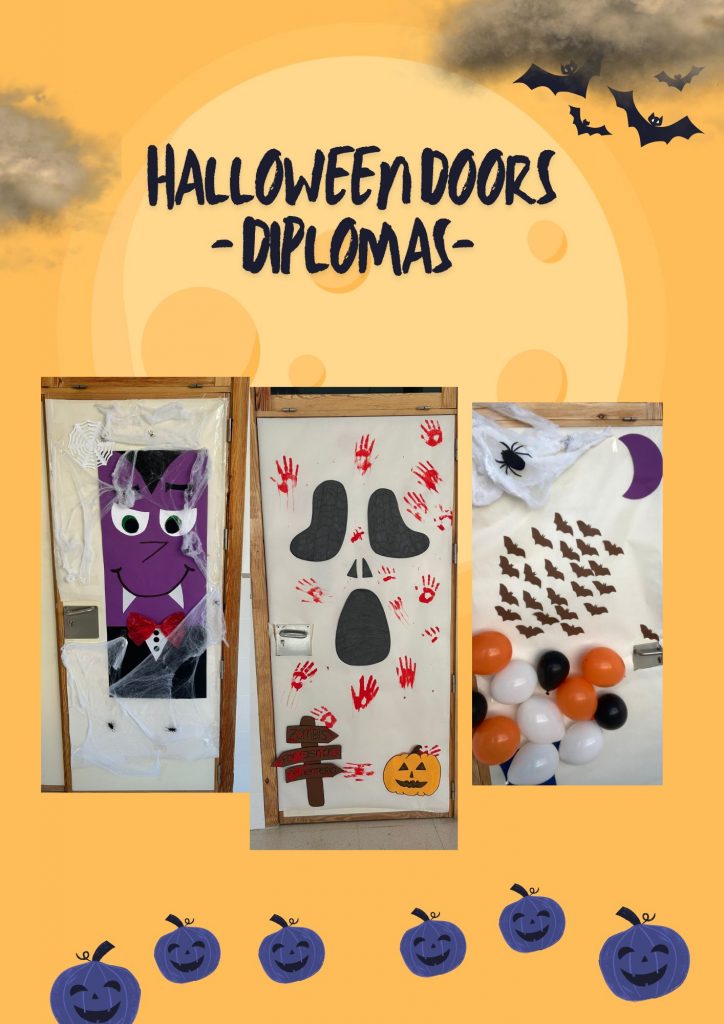 TERRIFYING DOORS . Students from 3rd and 4th ESO decorated the classroom doors with original and scary designs. They worked in groups and became artists for this special occassion. Discover the winners: